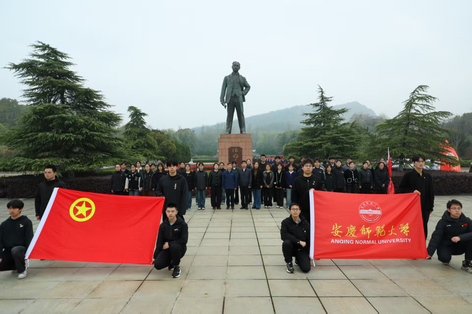3月31日上午,校党委常委、副校长申传胜率师生代表前往安庆独秀园,参加安庆市政协组织的祭扫陈独秀先生墓活动。校团委负责人,校级学生组织骨干、校“青马班”学员代表参加祭扫活动。申传胜代表学校敬献花篮、整理缎带。师生代表绕墓瞻仰并在《新青年》碑刻、陈独秀铜像前驻足哀思,表达对革命先驱的深切缅怀。