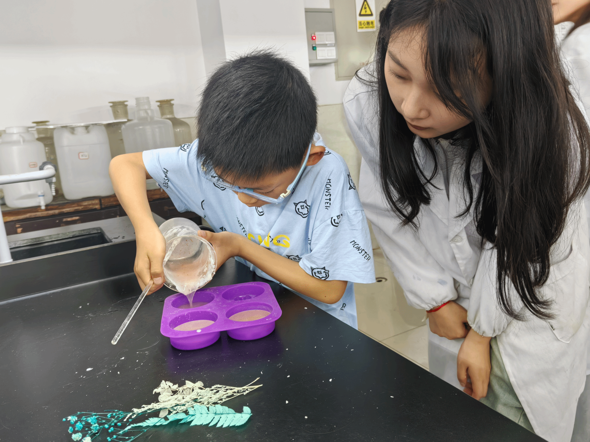“我们希望通过这样的活动,让小朋友们在实践中学习科学知识,感受科学的魅力,为他们打开科学的大门,引领他们走向更加广阔的未来。”化学工程与工艺2022级(1)班汪宏亮表示。此外,H2O传习工艺坊还为每位小朋友准备了提前制作好的各类香薰蜡片,为小朋友们送上一份特别的儿童节礼物。