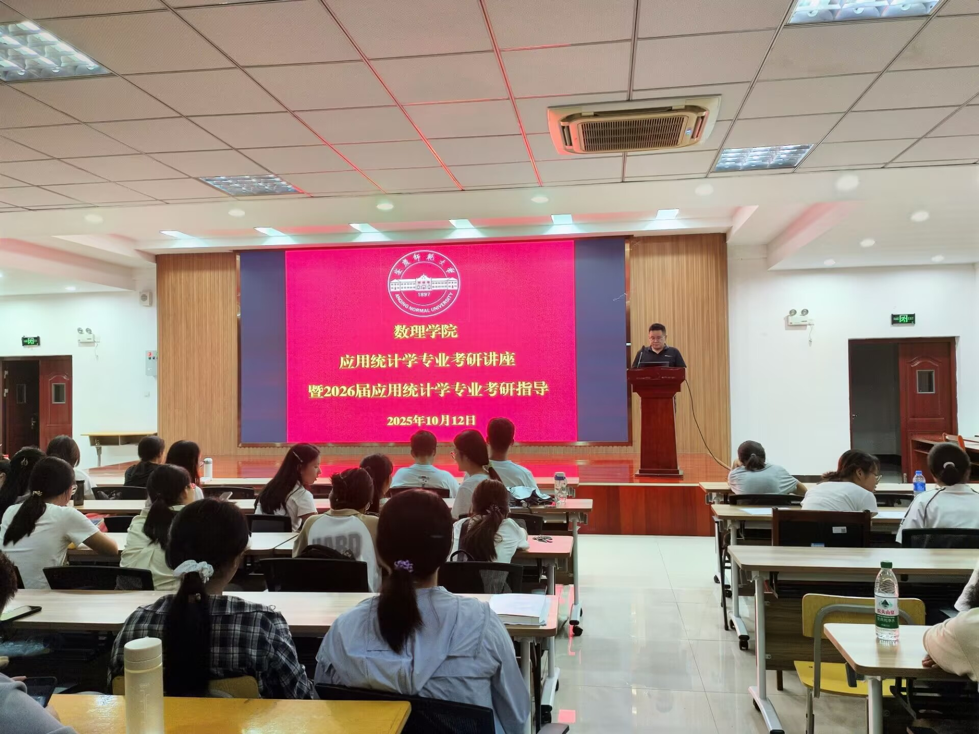 10月12日晚,数理学院在401报告厅成功举办2026届毕业生考研指导会。统计系主任程文韬、概率统计教研室主任戴大洋、教师代表丁承军、应用统计学专业2026届考研学生及其他年级学生参加会议。会议由戴大洋主持。