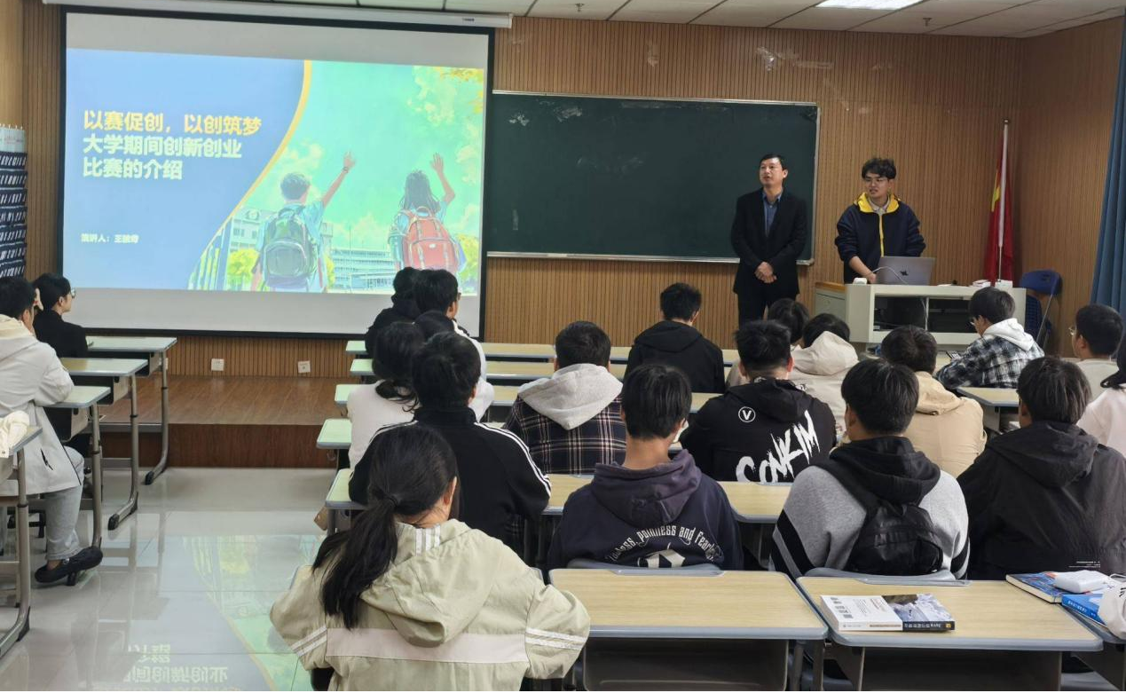 在互动交流环节,现场气氛热烈。王骏奇就同学们提出“低年级学生如何平衡学业与竞赛准备”“跨专业组队应注意哪些问题”等具体困惑给予了耐心细致的解答。他鼓励大家以此次论坛为新的起点,主动关注赛事动态,尽早投身项目实践,在竞赛舞台上积累经验、锤炼本领、实现梦想。