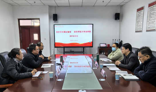 11月27日,安庆市交通运输局交通执法支队副支队长杨宁、法制科科长开朗、政策法规科科长王振斌一行来法学院调研。法学院副院长邱少晖、行政法专业老师宁善威、王珂热情接待了调研组一行,并召开交流座谈会。