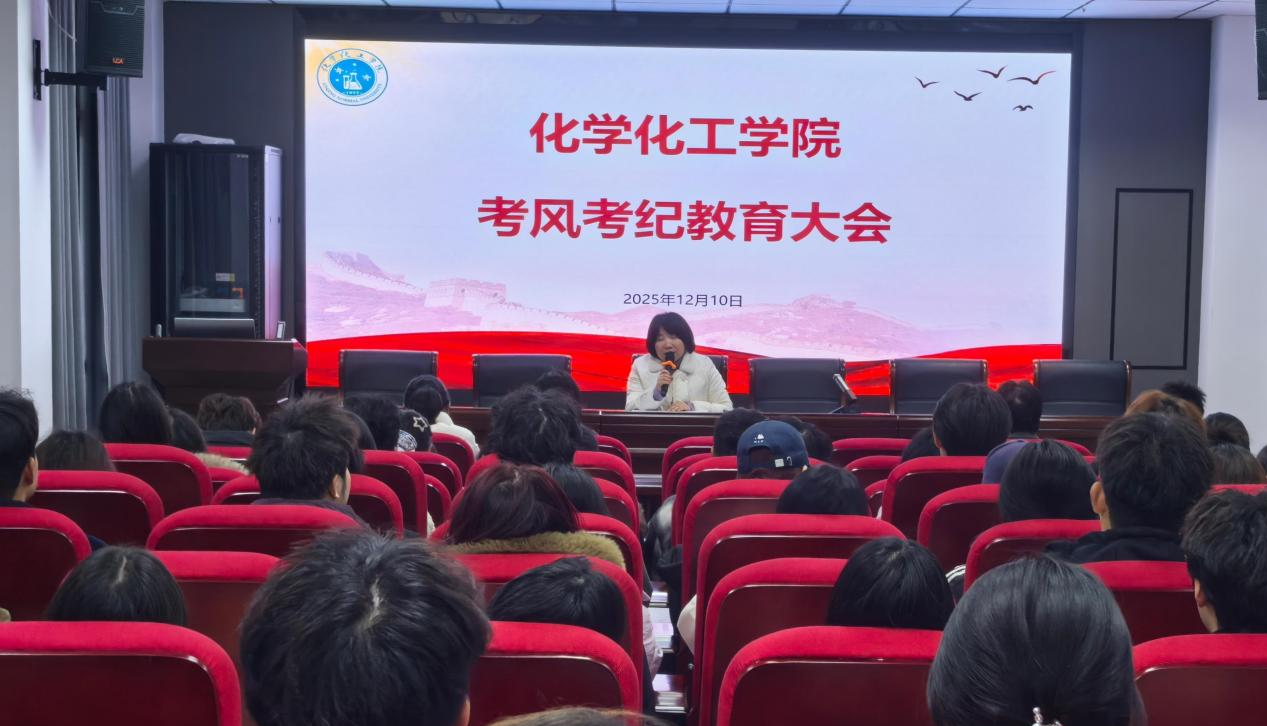 12月10日,化学化工学院在化学楼401召开考风考纪教育大会。会议由学院党委负责人主持,全体辅导员及各年级百余名学生代表参会。