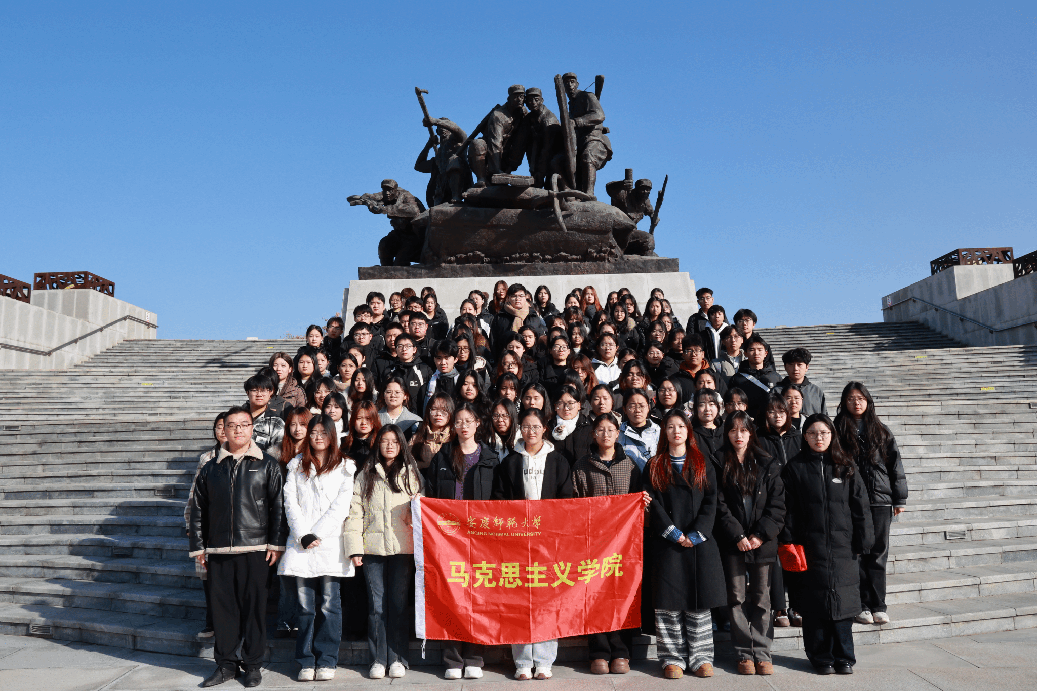 12月14日,马克思主义学院2024级思想政治教育专业赴安庆市烈士陵园开展“追思先烈伟绩,筑牢青春信仰”主题团日活动。思想政治教育专业2024级1、2、3班全体同学及辅导员田梦甜110余人共同参加。