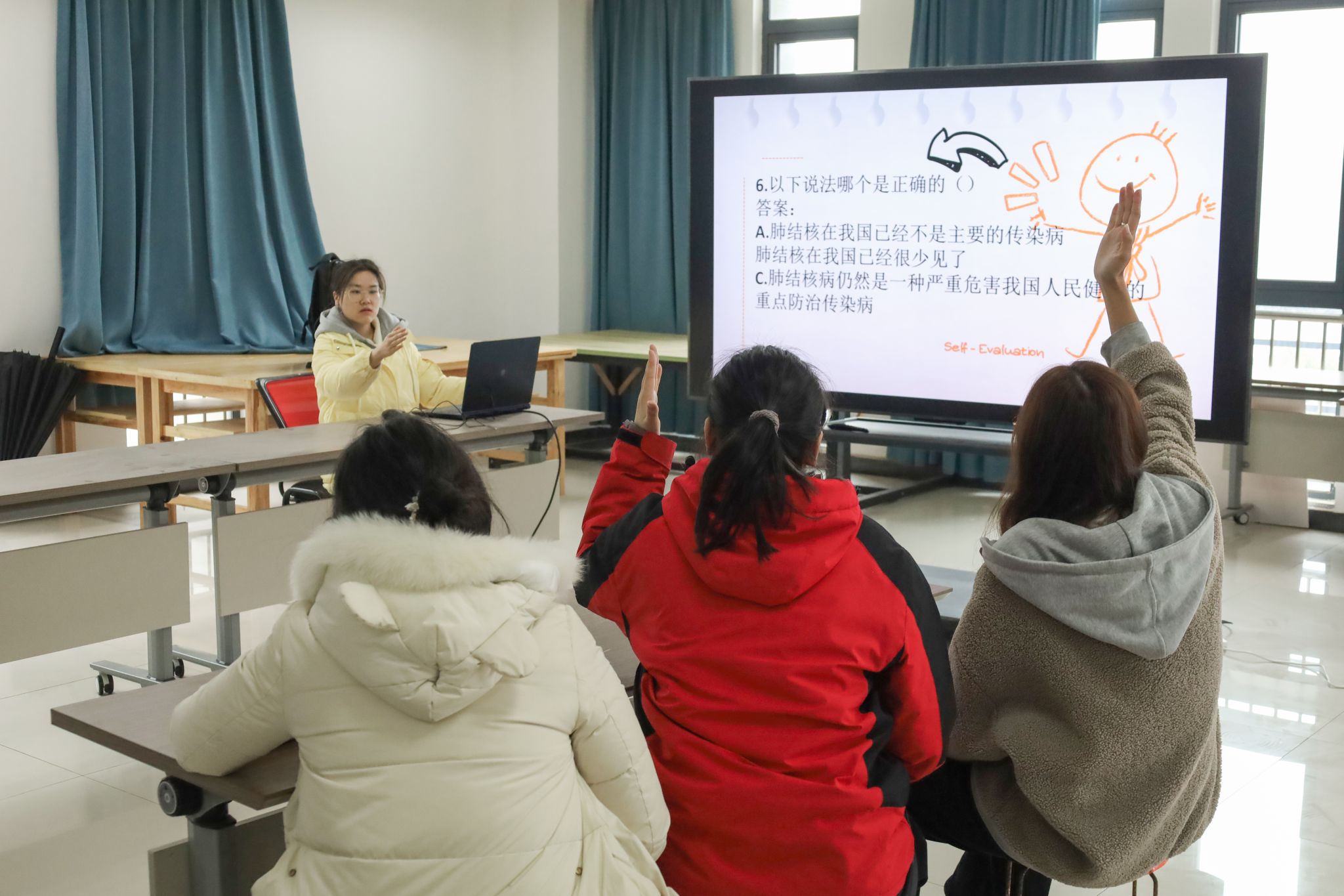 “什么是结核病”“如何预防”……动画专业2025级的黄雪利结合PPT,从结核病的定义、传播途径到日常防护措施,层层展开、细致讲解,为在场观众带来一场深入浅出的健康知识讲座。黄雪利表示:“希望通过这次科普,让大家真正认识肺结核、了解肺结核,不恐慌、不忽视,在日常学习生活中做好自我防护,也为接下来的比赛打下扎实的知识基础。”