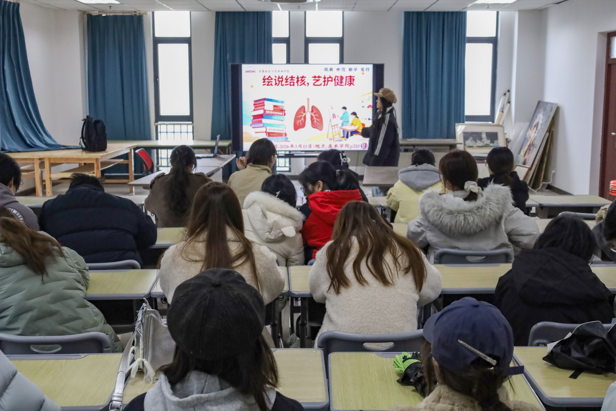 3月15日,美术学院举办“绘说结核,艺护健康”活动。本次活动紧扣“世界防治结核病日”主题,采取知识竞答与作品展示相结合的形式,深度融合专业特色与健康宣教,通过知识竞技与艺术创作双轮驱动,学院近百名学生参与,在院内掀起结核病防治宣传热潮。