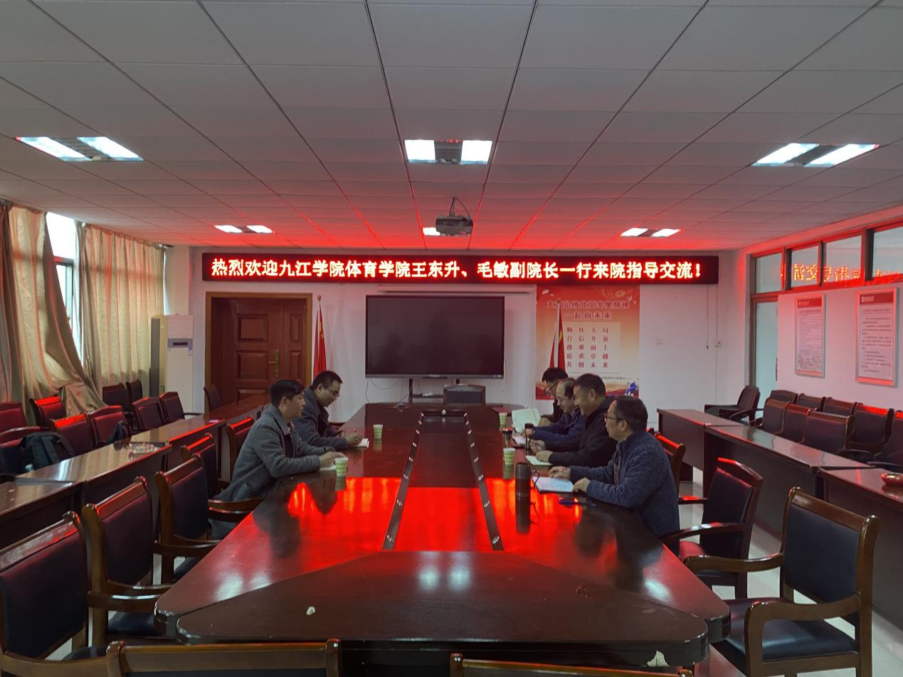 王东升对体育与健康学院的热情接待和大力支持表示感谢。他介绍了九江学院的发展历史,以及体育学院在学科发展、专业建设、课程设置、场地设施、师资队伍等方面情况,并重点就体育专业硕士点申报工作的相关事宜进行交流。毛敏就九江学院体育学院的教学管理、实验室建设等工作进行介绍。双方围绕教学成果培育、职称评聘激励机制、教育见习实习研习等工作进行了深入探讨与交流,并就深入开展交流合作达成了一致意见。