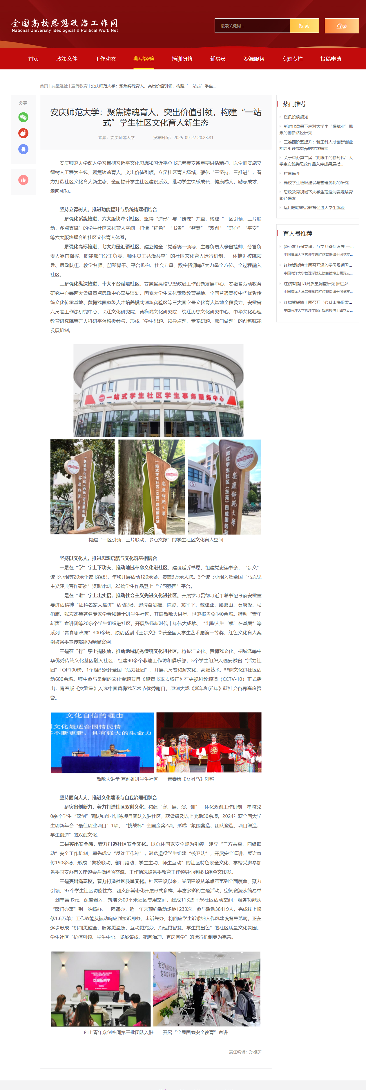 【全国高校思想政治工作网】安庆师范大学:聚焦铸魂育人,突出价值引领,构建“一站式”学生社区文化育人新生态https://www.sizhengwang.cn/a/dxjy_sxjy/250927/2228818.shtml
