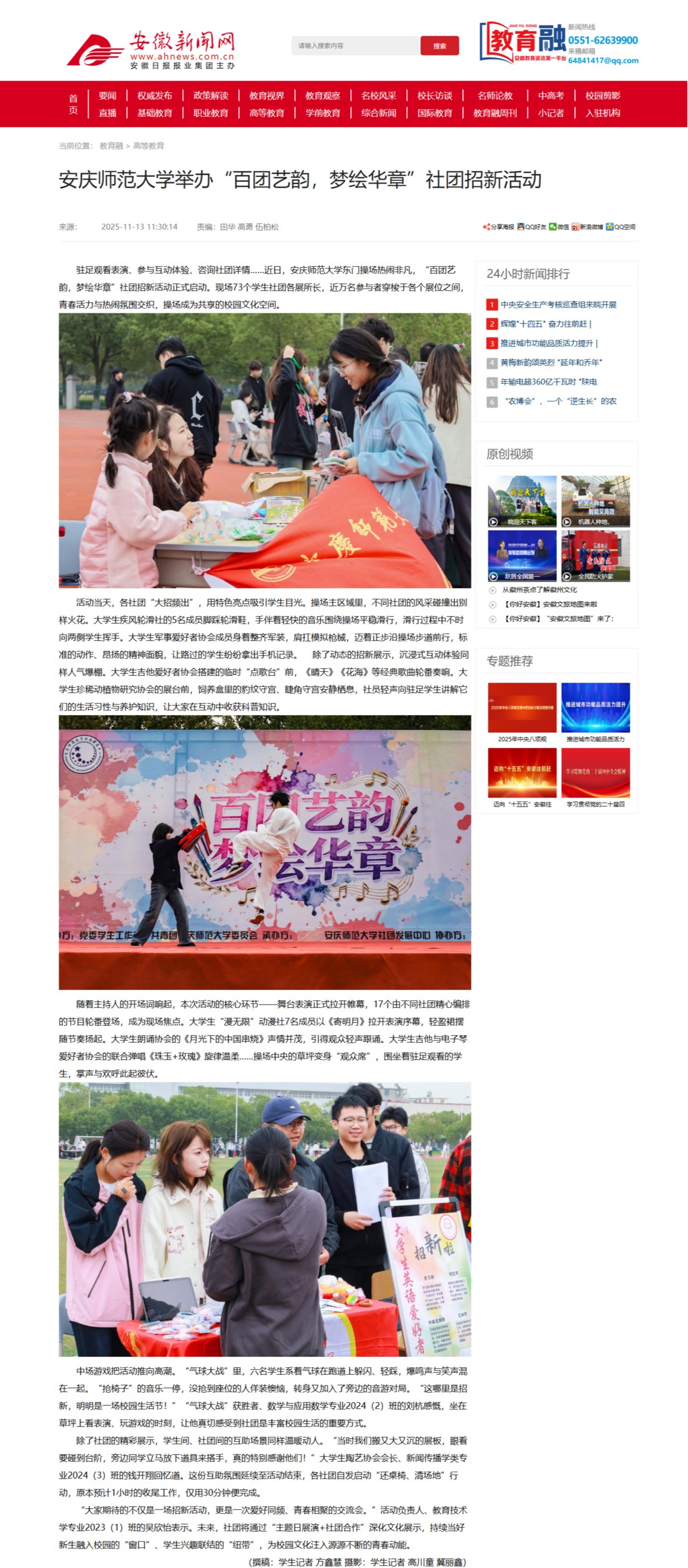 【安徽新闻网】安庆师范大学举办“百团艺韵,梦绘华章”社团招新活动http://xxt.ahnews.com.cn/news/2025/11/13/c_42245.htm