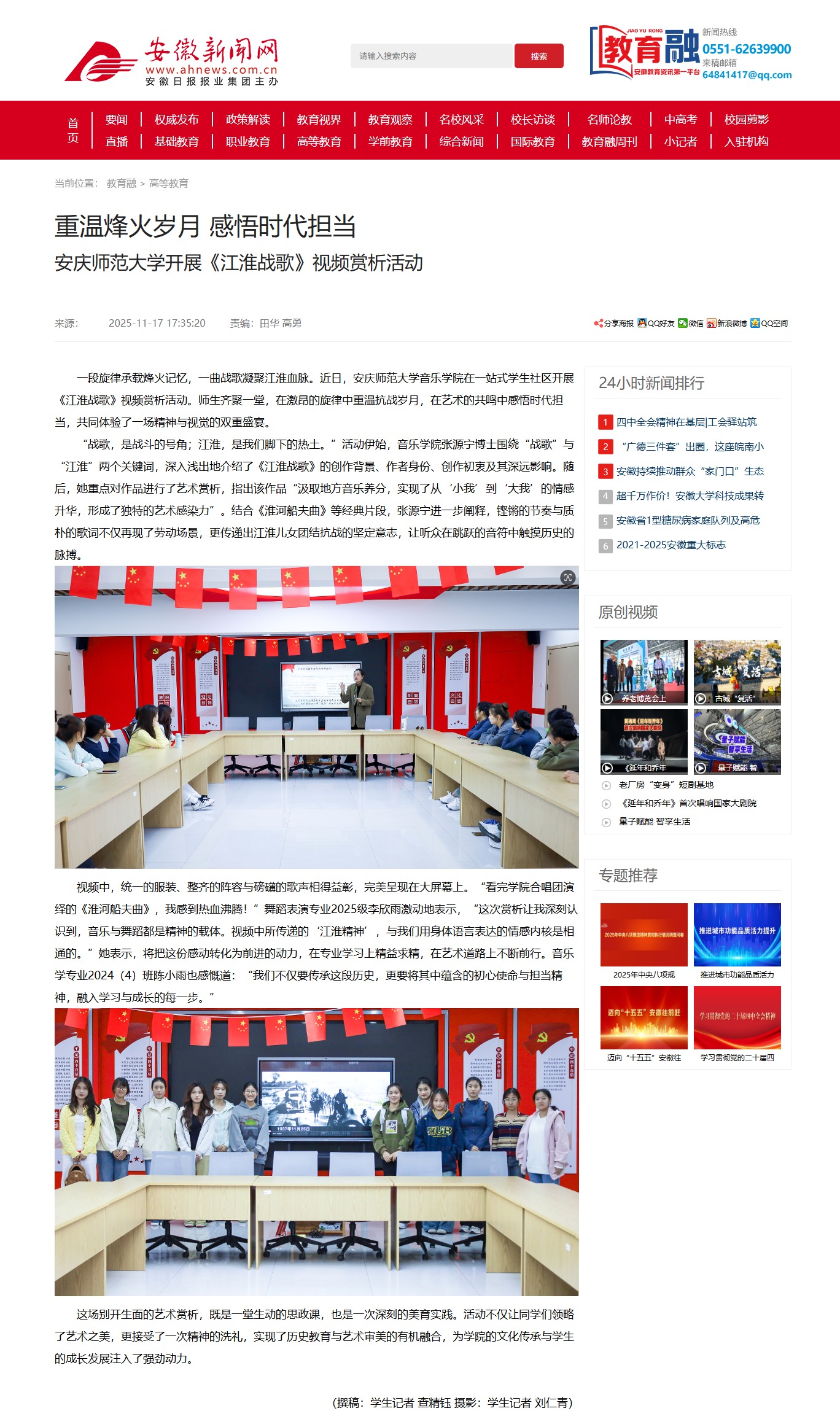 【安徽新闻网】重温烽火岁月 感悟时代担当 安庆师范大学开展《江淮战歌》视频赏析活动http://xxt.ahnews.com.cn/news/2025/11/17/c_42399.htm