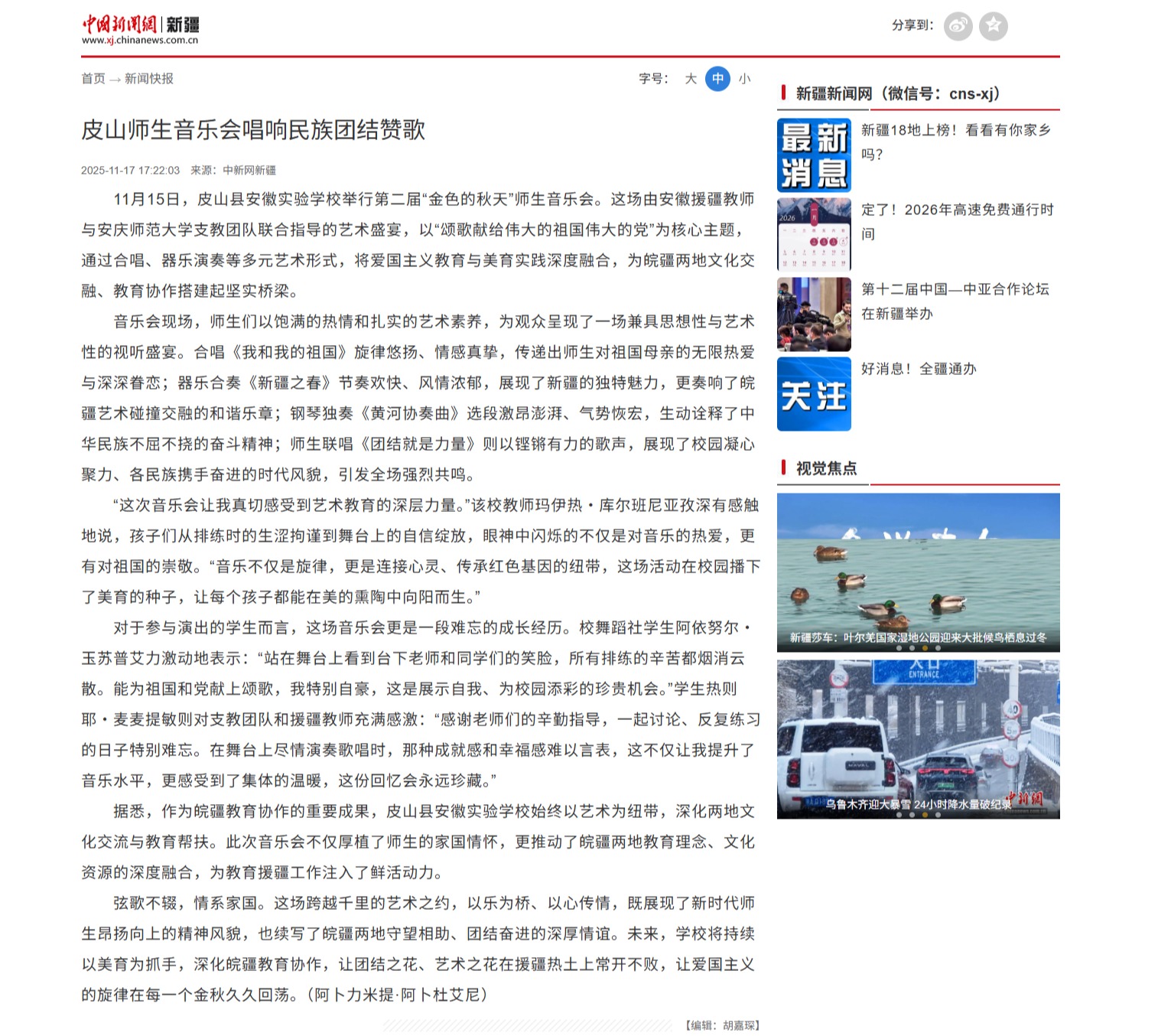 【中国新闻网】皮山师生音乐会唱响民族团结赞歌http://www.xj.chinanews.com.cn/dizhou/2025-11-17/detail-ihexcwsw1925877.shtml