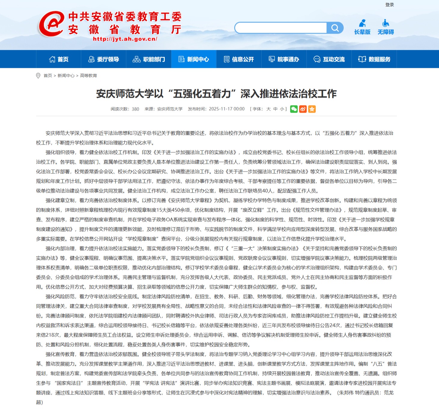 【安徽教育网】安庆师范大学以“五强化五着力”深入推进依法治校工作https://jyt.ah.gov.cn/xwzx/gdjy/40772914.html