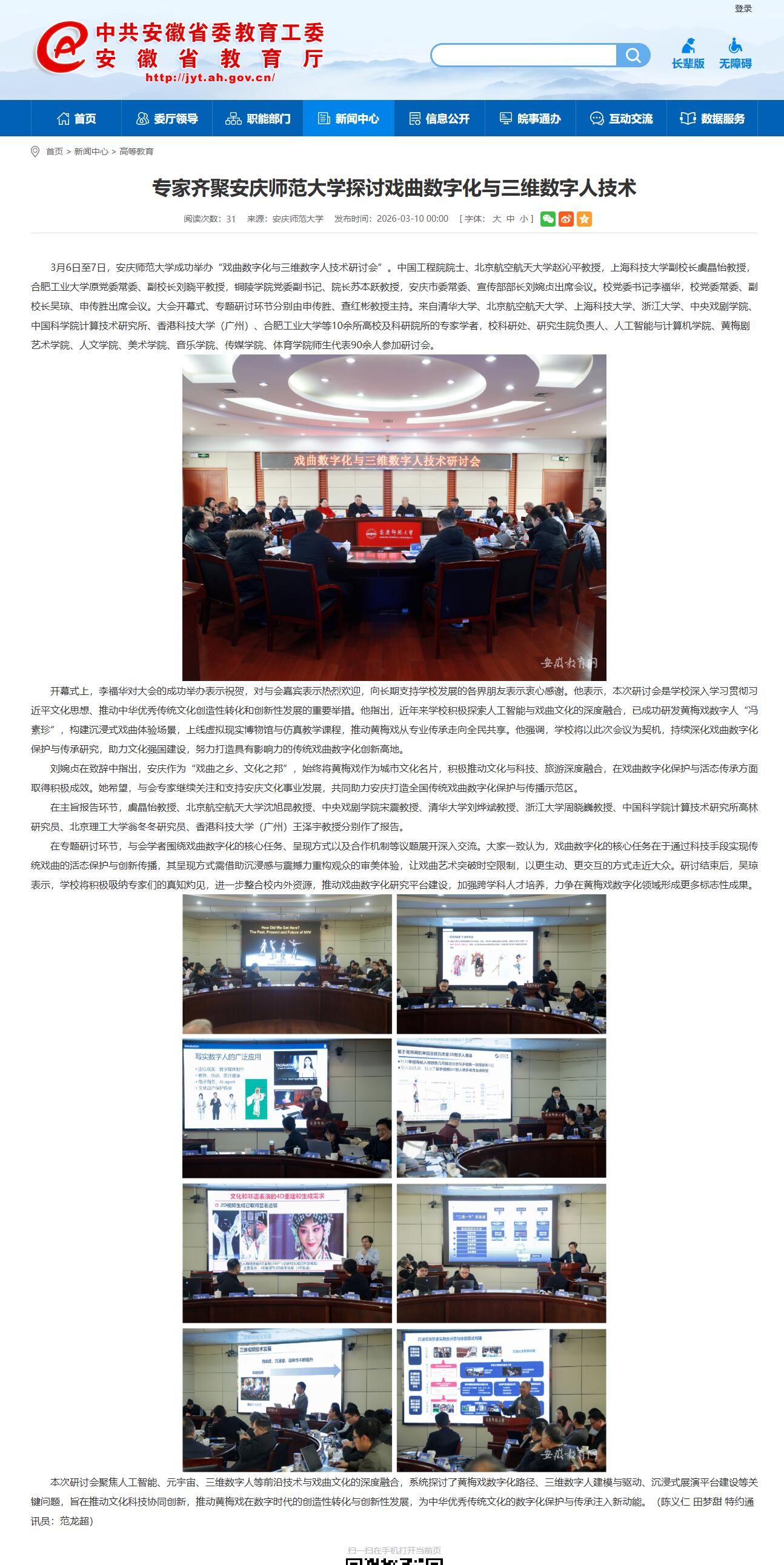 安徽教育网:专家齐聚安庆师范大学探讨戏曲数字化与三维数字人技术