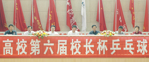 上午9点30分,第六届“校长杯”乒乓球赛正式开赛。安徽省高校“校长杯”乒乓球赛是由省教育厅主办,以省内各高校校级领导干部为参赛主体的大型竞赛活动。从2004年以来,已经连续举办了五届。本次比赛由我校承办、安徽省教育工会协办,共有42个代表队参加,参赛人数257人,其中校级领导干部达111人。