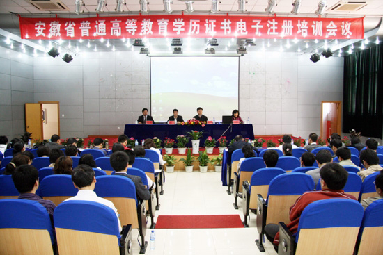 4月28日上午,安徽省普通高等教育学历证书电子注册培训会议在我校菱湖校区学术报告厅隆重召开。副院长张群、安徽省教育厅学生处处长燕贵忠等领导出席了会议,来自省内80多所高校的130位从事学籍管理工作的教师参加了会议。会议由安徽省教育厅学生处胡晓云同志主持。