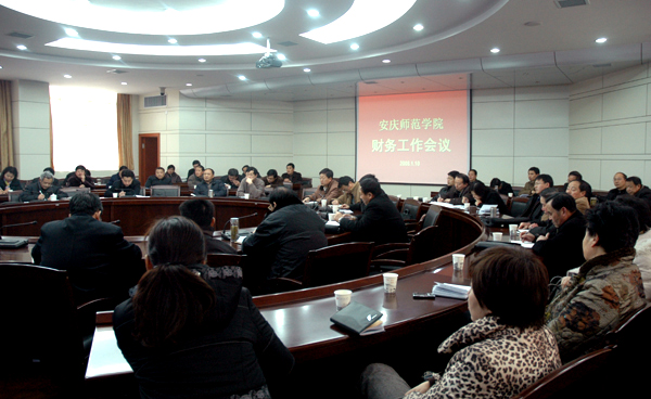 2008年元月10日下午,我校在龙山校区行政楼二楼会议室召开新年财务工作会议。汪青松院长出席会议并作重要讲话,闵永新副院长、张群副院长出席会议。各院系分管财务工作负责人、分管学生工作的书记以及各机关单位主要负责人参加了会议。会议由闵永新副院长主持。