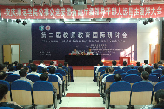 10月16日下午,我校在菱湖校区学术报告厅举行安庆师范学院公推公选安徽省副厅级领导干部人选民主测评大会。省委教育工委常务副书记张荣国、省委教育工委组干处处长江传瑞、省委组织部企事业干部处副处长张日升、省纪委宣教室副处级纪检监察员陶有海、省委教育工委组干处主任科员戴晓江、省委教育工委组干处主任科员卢鹏、省教育厅人事处主任科员王学武、省委组织部信息中心副主任科员余乐莅临指导,开展民主测评和考察工作。校党委书记赵晓和,党委副书记、院长汪青松,党委委员、副院长时新中,党委委员、副院长王海燕,党委委员、纪委书记殷红,党委委员、副院长闵永新,副院长张群出席了会议。机关正副处长、院系及直属单位党政正职,学校副高以上职称人员,省级以上人大代表、政协委员,民主党派市级以上主委,教代会执委等140余人参加了民主测评大会。