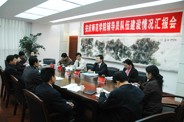 10月30日下午,省教育厅辅导员队伍建设情况检查组来我校检查指导辅导员队伍建设及相关工作情况。安徽师范大学党委副书记、检查组组长顾家山等一行四人在龙山校区行政楼北312会议室听取了我校汇报。汇报会由党委委员、副院长时新中主持。学生处、组织部、宣传部、人事处、财务处和部分院系分管书记、辅导员代表参加了汇报会。