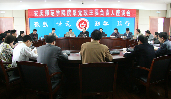 在校党委领导下,根据《安庆师范学院学开展深入学习实践科学发展观活动实施方案》的总体要求和《安庆师范学院开展学习实践科学发展观活动学习调研阶段实施方案》的具体安排,为确保我校学习实践活动取得实效,我校4月20日下午在行政楼二楼大会议室召开院系党政主要负责人座谈会。