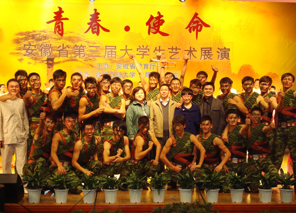 11月9日晚上,由安徽省教育厅主办,合肥工业大学和合肥师范学院共同承办的安徽省第三届大学生艺术展演活动艺术表演节目现场展演在合肥工业大学斛兵礼堂举行。安徽省人大常委会副主任朱维芳,安徽省副省长谢广祥,安徽省政协副主席赵韩,中共安徽省委教育工委书记、省教育厅厅长程艺,中共安徽省委教育工委常务副书记张荣国、副书记高开华,安徽省教育厅副厅长金燕,省教育厅副巡视员张培银以及来自全省部分高校的领导与千余名师生一同观看了演出。