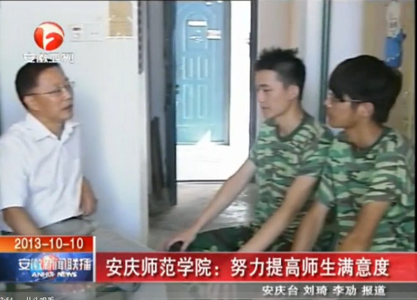 10月10日晚,安徽卫视新闻联播以《安庆师范学院:努力提高师生满意度》为题,专题报道了我校群众路线教育实践活动成效,时长近1分30秒。这是继9月14日《安徽日报》头版报道我校党的群众路线教育实践活动新闻后,省内重要主流媒体再次聚焦我校。