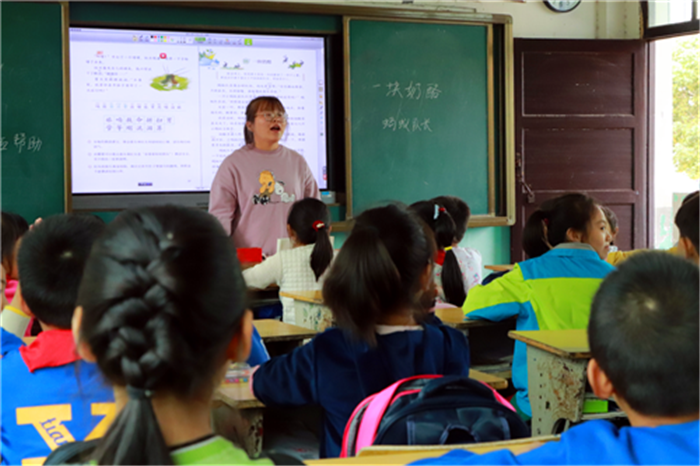 当天,新疆皮山县桑株镇的三位小学老师也来到罗岭中心学校旁听了“在线课堂”,学习这种特殊的教学方式。