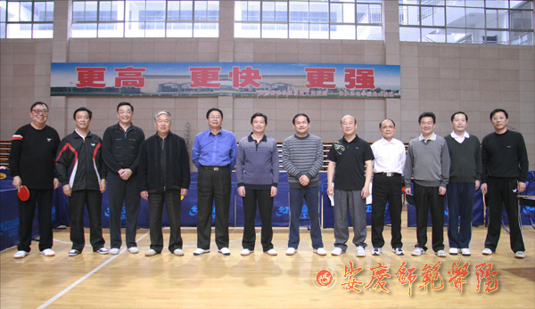 4月2日下午,安庆市、石化厂及我校领导乒乓球联谊赛在校体育馆举行。两支市委代表队、石化及我校共四个代表队的12名厅级领导干部参加了比赛。