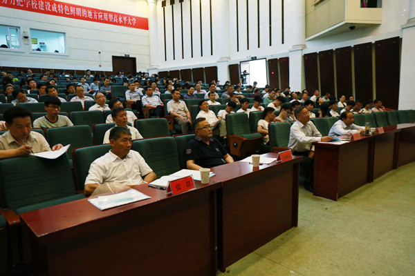 6月14日,我校在龙山校区音乐厅举行本科教学审核评估报告会。教育部本科教学审核评估专家、上海海关学院院长丛玉豪教授应邀就2018年教育部本科教学审核评估作专题培训报告。校党委书记许继荣,校长闵永新,副校长张群,党委委员、文学院党总支书记、院长方锡球出席会议。各学院党政班子全体成员、教研室主任、正高级职称人员、教学秘书、学生代表;教学督导组全体成员;各职能部门科级以上干部参加会议。闵永新主持会议并讲话。