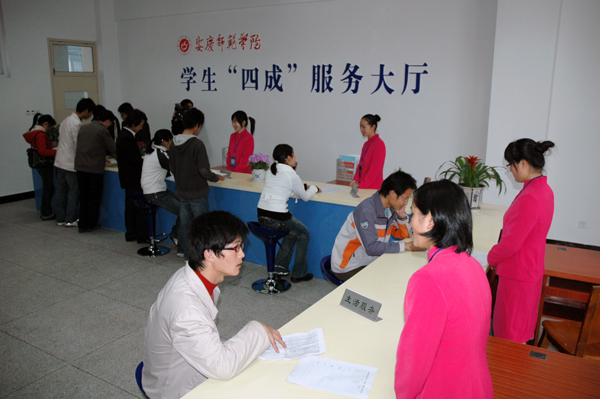 3月21日下午,我校举行学生“四成”服务大厅揭牌仪式。校党委书记赵晓和,党委委员、副院长时新中,党委委员、副院长闵永新,副院长张群出席了本次揭牌仪式。党委组织部、宣传部、财务处、教务处、招生就业处、保卫处、学生处、团委、校医院等部门负责人参加了本次仪式。揭牌仪式由学生处处长、团委书记戴卫义主持。学生“四成”服务大厅工作人员与学生代表五十余人也参加了本次仪式。