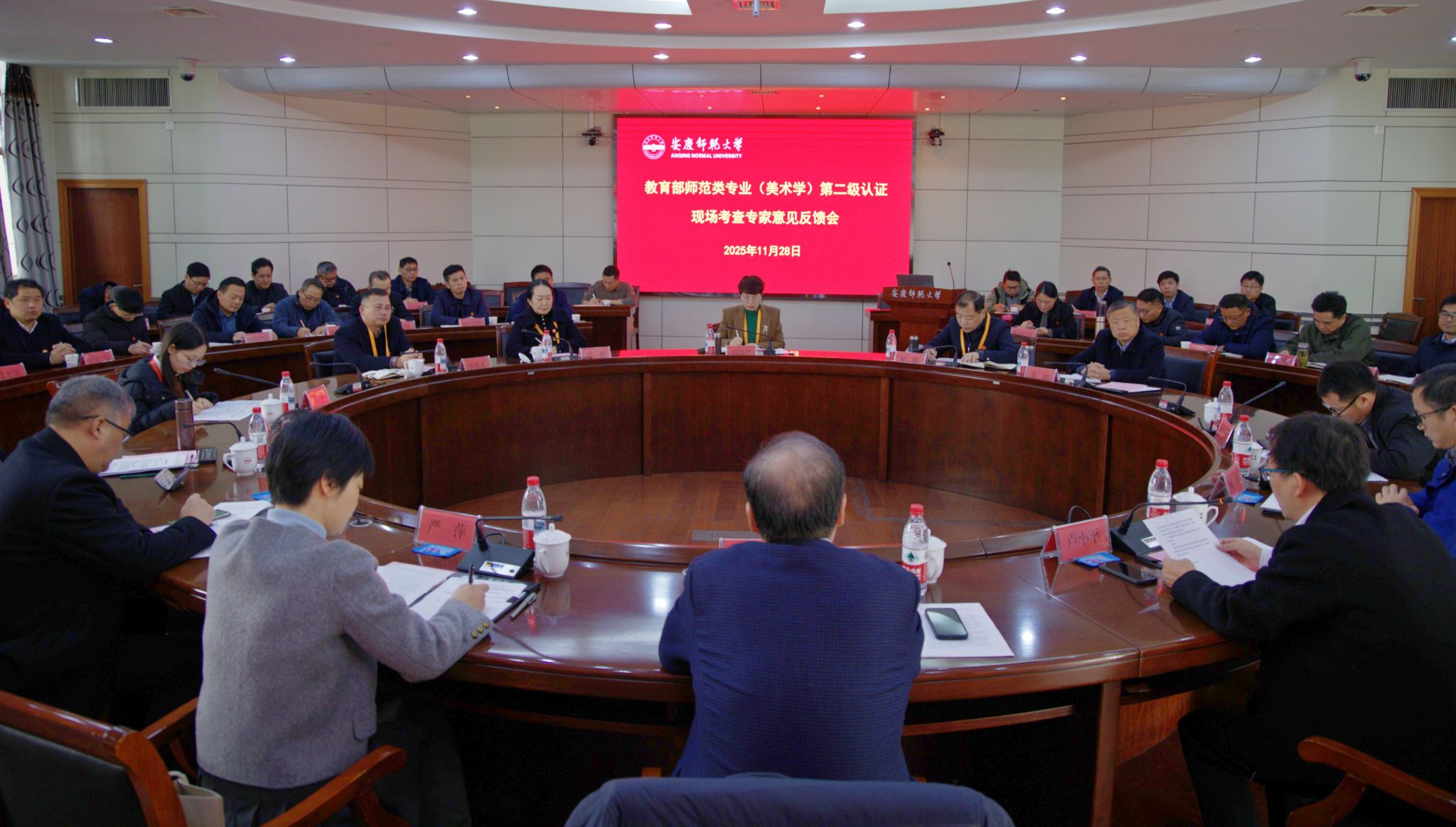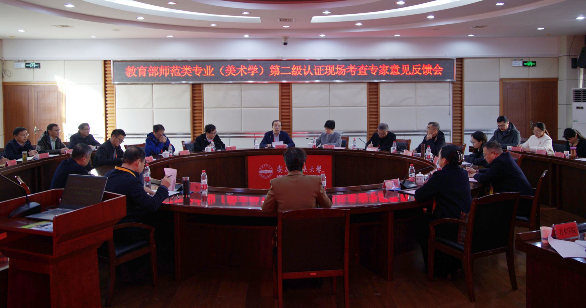 11月28日,关松林主持召开专家意见反馈会,专家组全体成员,安徽省教育评估中心负责人,学校党政领导彭凤莲、崔明、吴琼、秦朗、计裕人出席会议。