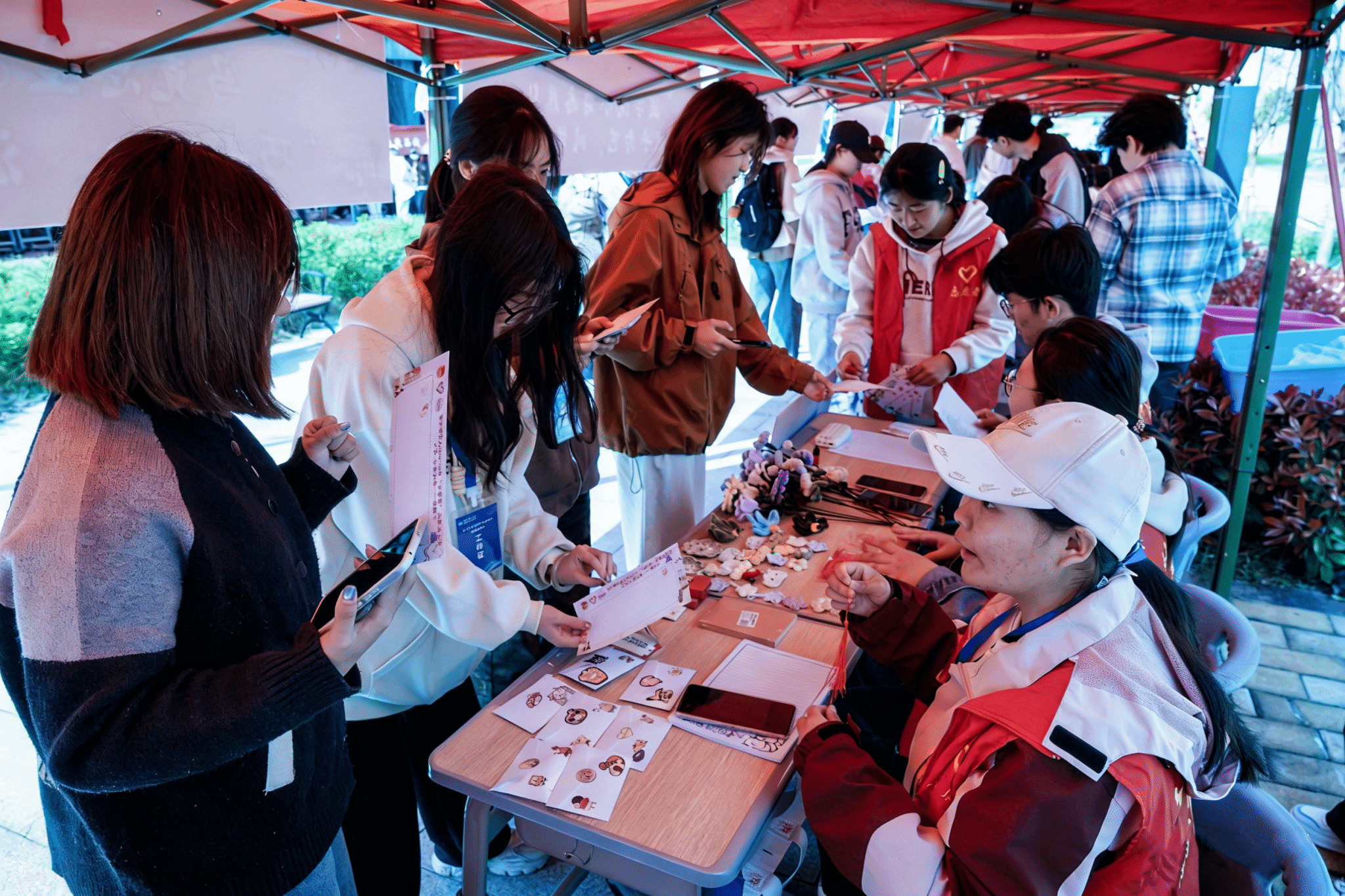 爱心义卖传递温情、手作体验传承匠心、公益宣讲科普知识……市集现场,志愿服务队依托专业特色设置了17个形式多样的展位,涵盖爱心义卖、手工体验、知识宣讲、健康服务、传递爱心等内容,彰显出学子们投身公益、奉献担当的青春风采。