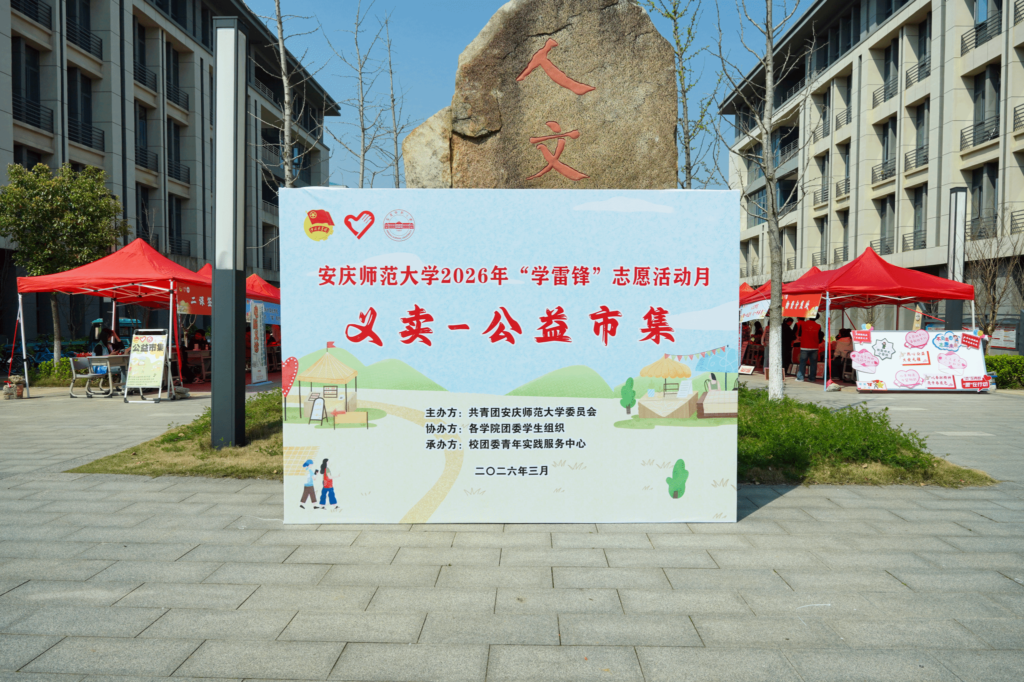 “公益市集开摊啦!游园赶集、集章闯关、爱心打卡,‘益’起学,争做‘追锋’青年!”3月29日,“雷锋月”校园公益市集“火热开市”。集市设立义卖、宣讲、体验、服务与互动五大板块,以“游园式”的形式,吸引2000余名学子踊跃参与,在实践中传递公益温度,弘扬雷锋精神。