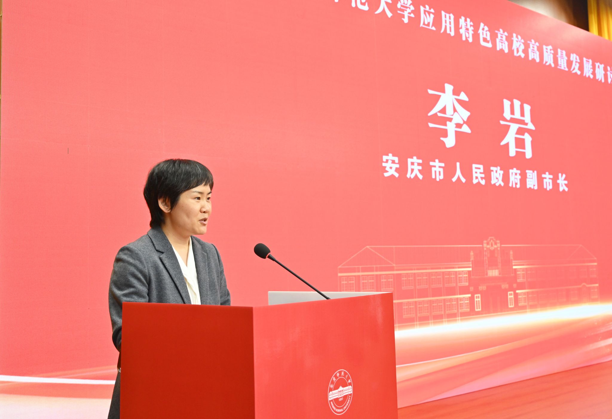 李岩代表市政府发表讲话。她对学校长期以来为安庆市经济社会发展作出的贡献给予充分肯定。她表示,市委、市政府将一如既往地当好学校发展的坚强后盾,为深化校地校企合作、助力应用特色高校建设创造最优环境。她希望,学校加大学科专业调整优化改革力度,更精准对接安庆产业升级、人才引育、城市发展的现实需求。