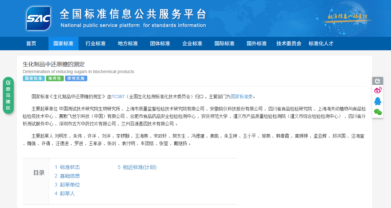该标准的主要起草单位包括中国测试技术研究院生物研究所、上海市质量监督检验技术研究院有限公司、安徽皖仪科技股份有限公司、安庆师范大学、遵义市产品质量检验检测院、四川省分析测试服务中心等多家权威机构和知名企业。我校采用离子色谱法(IC)建立生化制品中还原糖的定量分析方法,系统考察了葡萄糖、果糖、麦芽糖等主要还原糖种类的分析性能参数,包括线性范围、检出限(LOD)、定量限(LOQ)、准确度(以加标回收率评价)及精密度(以相对标准偏差RSD表示),并对色谱条件进行了优化验证。