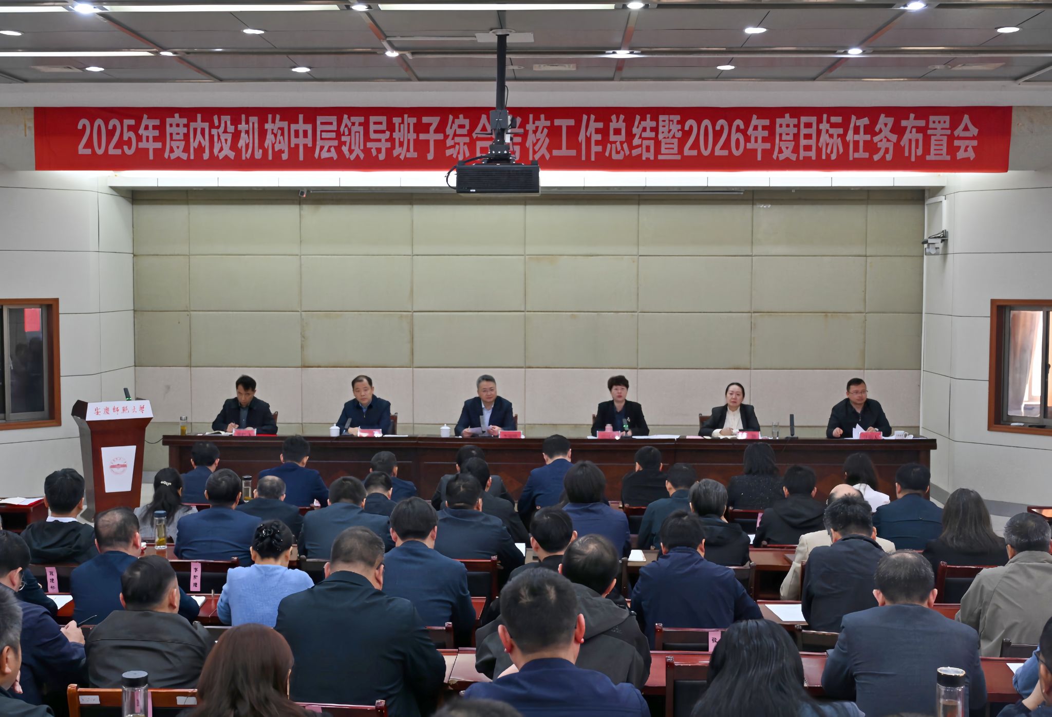彭凤莲主持会议。她强调,学校处于夯实基础、全面发力、创先争优、奋勇向前的关键阶段,扎实推进2026年度各项任务,意义重大,影响深远。各学院、各单位要凝聚思想共识,激发“想干事”的责任担当。以树立和践行正确政绩观学习教育为契机,有效激发全体教职员工干事创业的热情与干劲,汇聚人人有责、人人尽责、人人作为的强大合力。要聚焦重点任务,锤炼“干成事”的过硬本领。系统研究、细化分解任务,抓住短板弱项精准发力,以“一抓到底”的穿透力、“善作善成”的执行力,高质量高标准完成全年目标任务。要勇于创先争优,拓宽“开新局”的视野思维。精准把握国家发展新需求、高等教育发展新规律、科技发展新趋势,大胆谋划更多符合学校实际、贴合时代要求、彰显办学特色的新思路、新举措、新模式,以创新实践推动学校各项事业高质量发展。