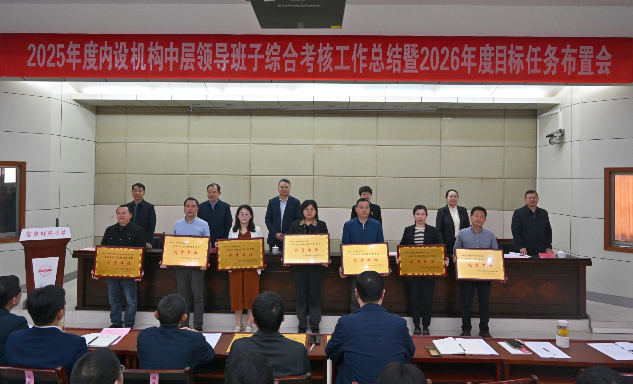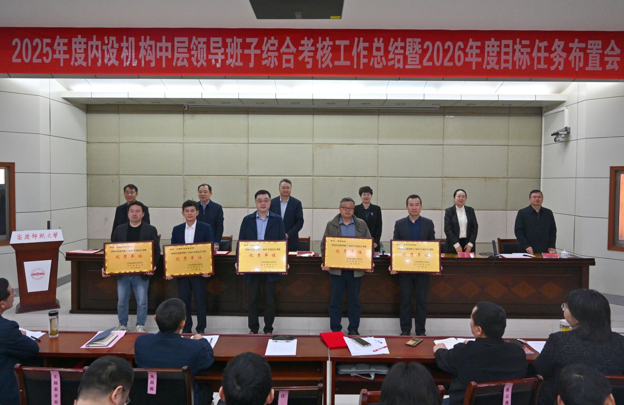 会上,崔明宣读了学校《关于2025年度中层领导班子和领导人员综合考核“优秀”等次的通报》《关于2025年度基层纪检工作考核结果的通报》。全体与会校党政领导为2025年度考核“优秀”的单位、个人颁发了奖牌和荣誉证书。