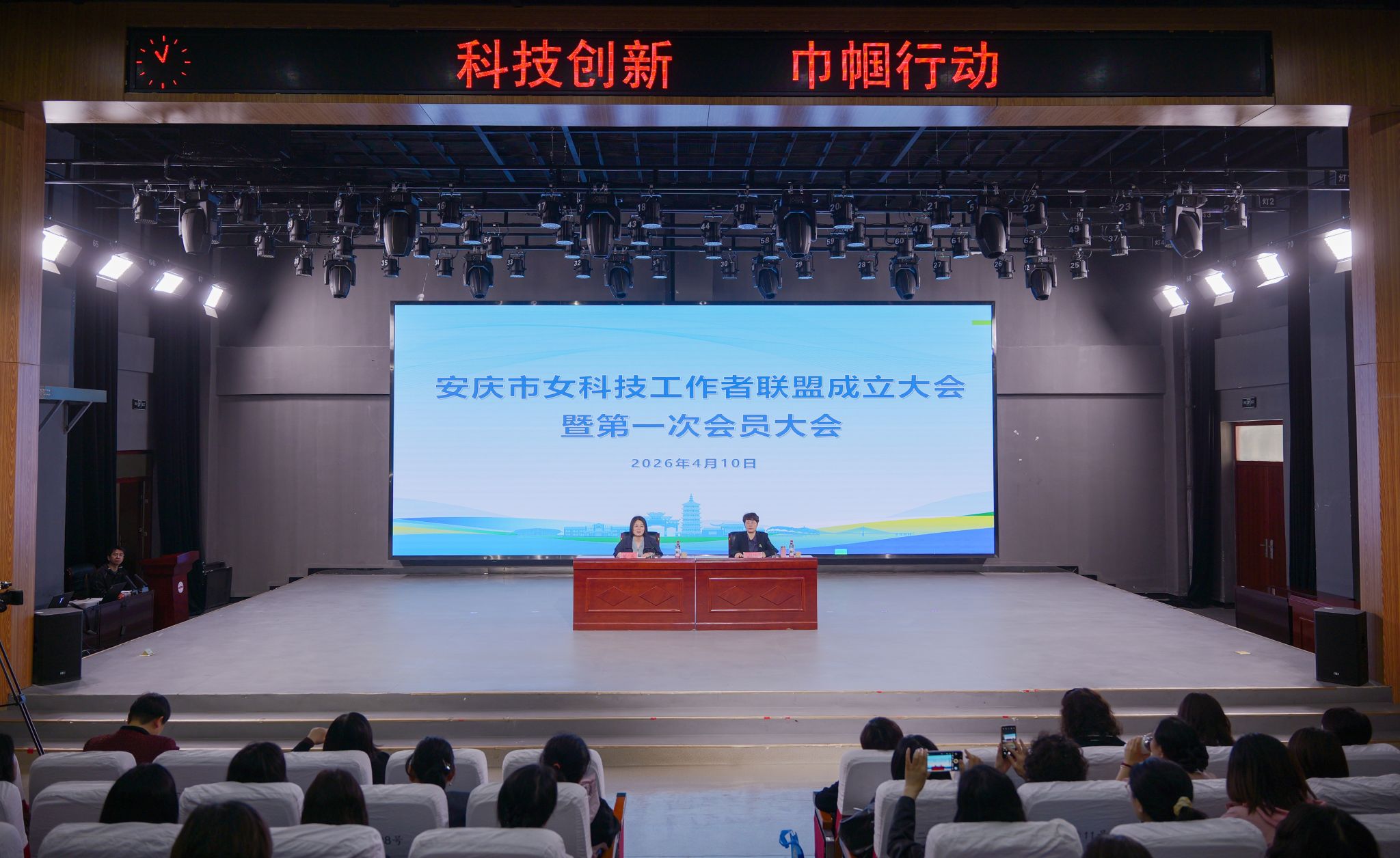 4月10日,安庆市女科技工作者联盟成立大会暨第一次会员大会在学校举行。校长彭凤莲,安庆市人大常委会党组成员、副主任叶林霞,安庆市妇联党组书记、主席陈茜出席会议。全市各领域女科技工作者代表们参加会议。