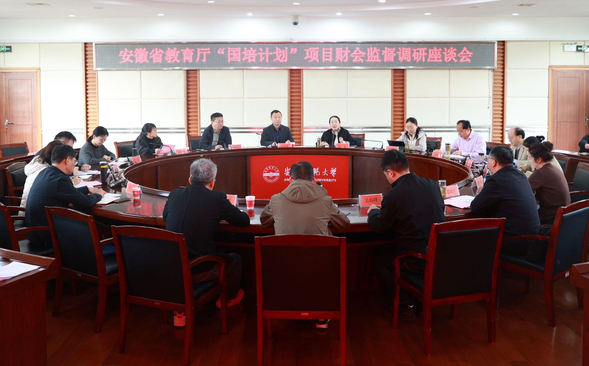 4月24日,省教育厅财会监督专家组来校开展2024—2025“国培计划”专项监督调研,校党委常委、副校长吴琼出席调研座谈会并致辞。专家组组长、安徽工程大学财务处处长方永胜,副组长、铜陵学院财务处处长徐琴等一行7人参加调研,我校2024—2025“国培计划”项目承办相关学院负责人,财务处、审计处、继续教育学院负责人及各项目组教师代表参加调研座谈。