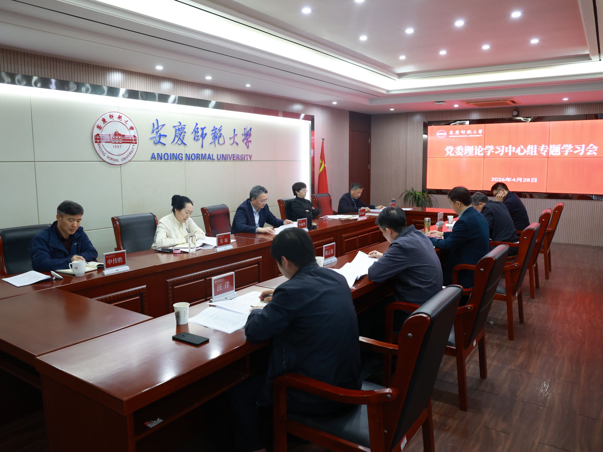 4月28日下午,校党委理论学习中心组召开专题学习会,深入学习习近平总书记关于树立和践行正确政绩观的重要论述,深入学习习近平总书记关于总体国家安全观的重要论述。校党政班子成员,有关职能部门主要负责同志参加学习。校党委书记李福华主持会议。