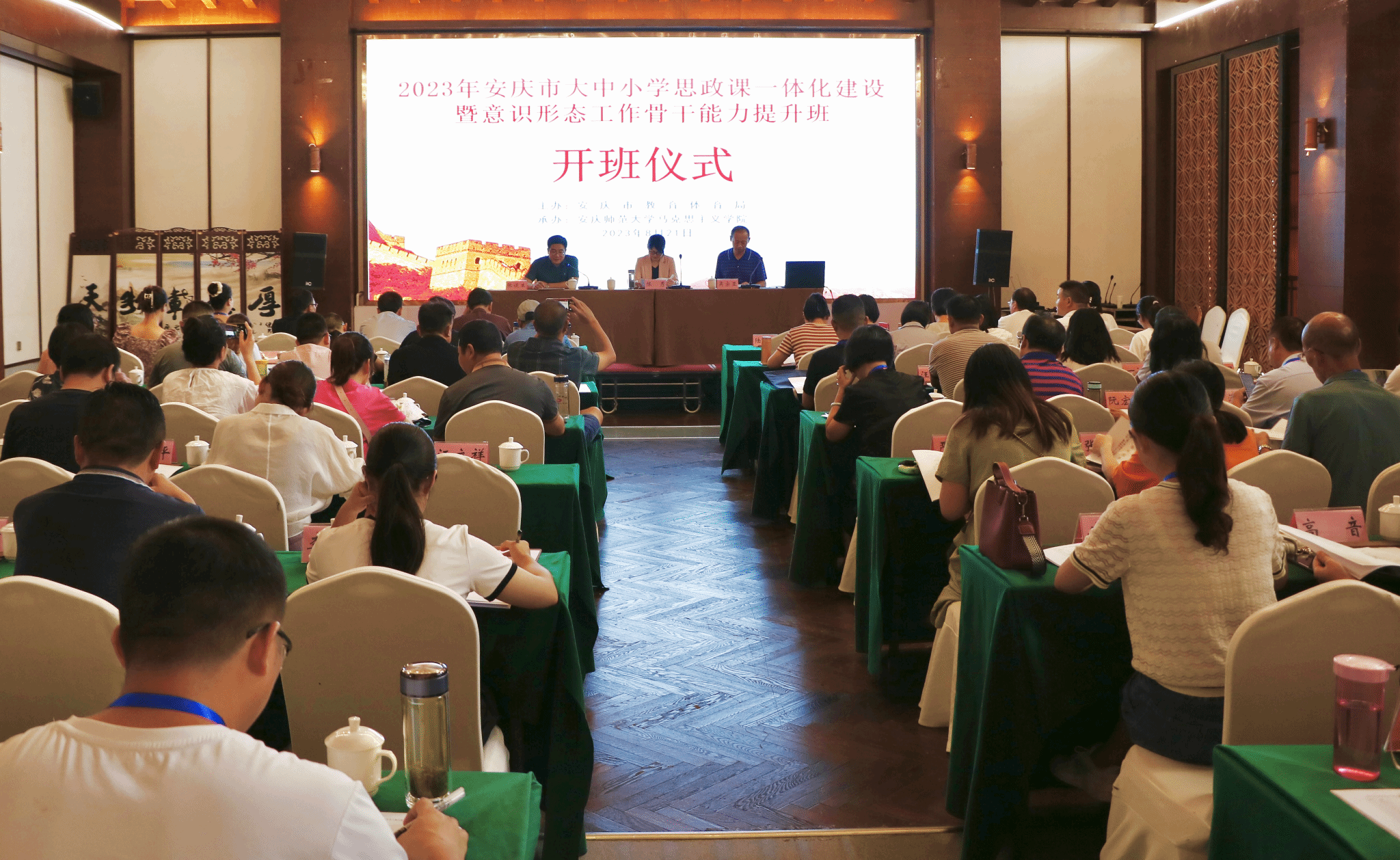 8月21日至26日,由安庆市教育体育局主办、我校马克思主义学院承办的安庆市大中小学思政课一体化建设暨意识形态工作骨干能力提升班顺利开班,校党委常委、宣传部部长、马克思主义学院党委书记陈秀教授,安庆市教育体育局四级调研员吴宗亚出席开班式,来自安庆市的大中小学思政课教师共80人参与此次培训学习。开班式由马克思主义学院副院长张俊生主持。