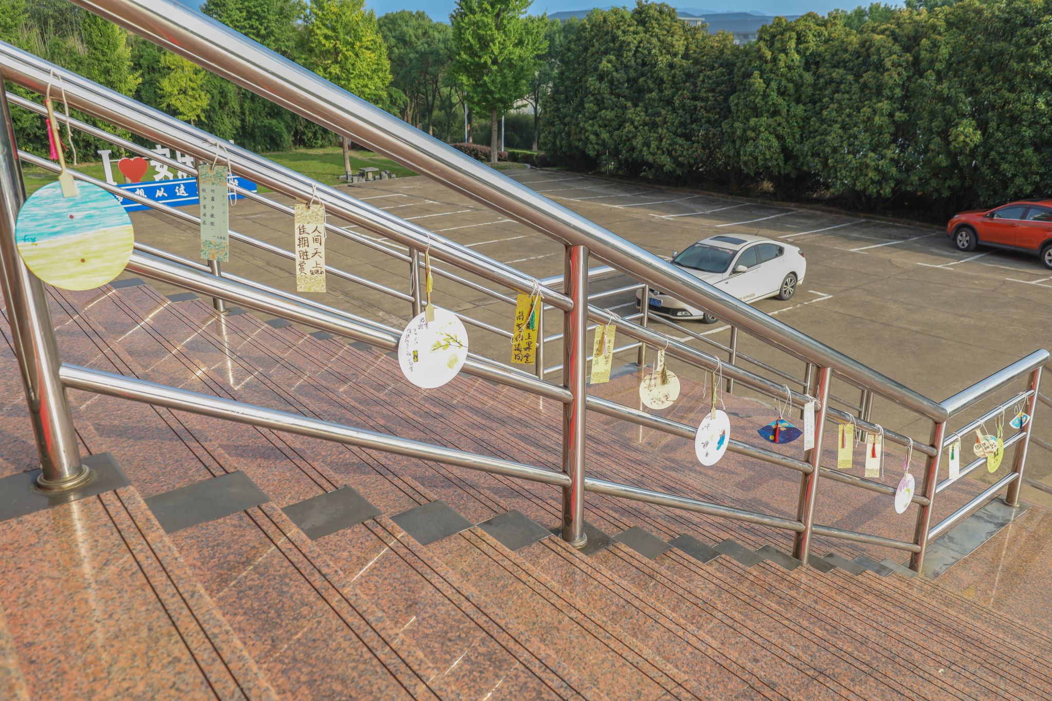 绘制完成后,百余枚书签团扇被悬挂于阶梯两侧栏杆上,扇尾流苏迎风飘扬,出入图书馆的同学们用相机记录下图书馆的崭新样貌。此外,活动还开展了投壶小游戏,学生们在题诗作画之余体验传统游戏乐趣。