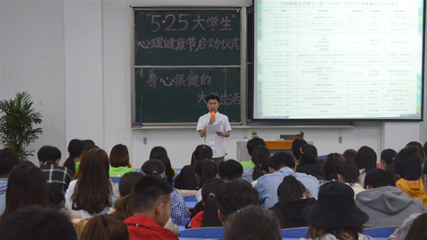 5月8日下午,第十三届“5•25”大学生心理健康节启动仪式在安庆师范大学文溯楼108教室进行。学生处副处长汪博武、大学生心理健康教育与服务中心和各学院相关负责老师以及两百多名学生代表参加了启动仪式。