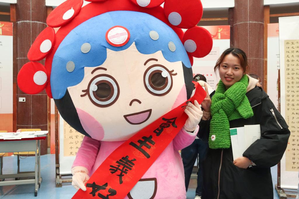 活动中,书法班学员们大展身手,抬手、沾墨、挥笔,寥寥几笔,一个个“福”字就跃然纸上。除了传统贺词,春联的内容也是多种多样,有的是对期末考试的祈祷,有的是对备战考研学子的殷切鼓励,有的是新时代青年人对祖国的点赞......收到心仪的春联,在场的同学们兴致高涨,充满了欣喜与感动。计算机科学与技术专业2020级(3)班的汤子航说:“看着这些字,内心就充满了斗志,拿回去贴在寝室,能激励着我努力奋进。”两个可爱的团团吉祥物“安安”和“青青”拿着写好的春联,与同学们积极互动,引来不少师生合影,生动地体现了我校特色,将活动推向高潮。