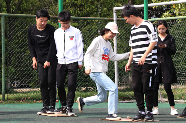 难度系数较大的游戏项目是垫排球和脚底挠痒痒。“垫排球这个项目要求每个队伍中三个队员都连续垫十个排球,难度系数很高。”来自应用心理学2017级洪艳说,“而令我印象最深刻的游戏项目是脚底挠痒痒,这个项目要求我们一分钟之内在指压板上完成跳绳20下。虽然脚趾会被硌得很痛,但是非常有意思。”