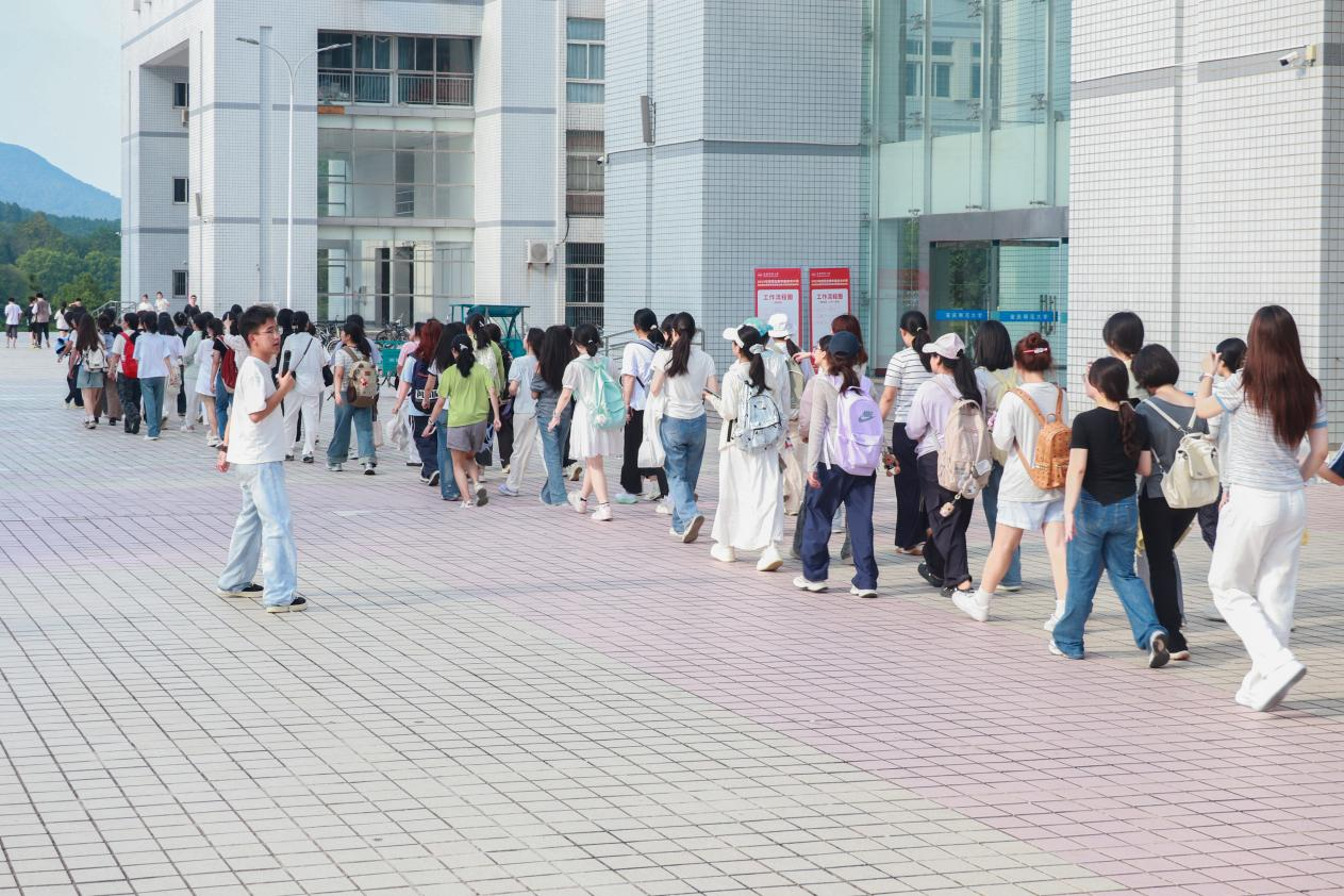 思想政治教育专业2024(1)班的丁如莎面带笑意,抬手指引新生方向,脚步放缓与新生并肩前行。她介绍,从马克思主义学院的特色来看,这里不仅是温暖的大家庭,而且会组织各类学习交流活动,帮助新生快速融入集体,找到属于自己的归属感。