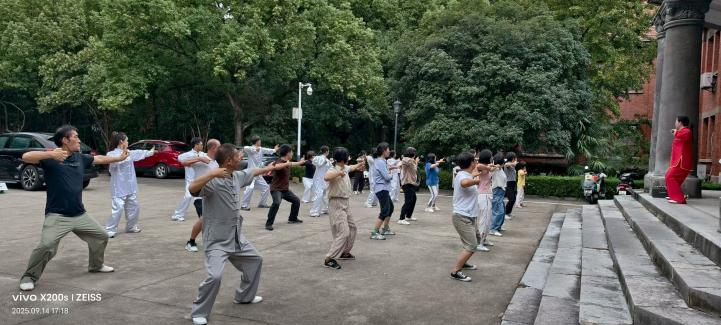 9月17日中午,协会在新校区绿树成荫的运动场上开展集体练习活动。老师们整齐列队,在舒缓的节奏中感受传统健身运动的独特魅力,成为校园里一道亮丽的风景线。