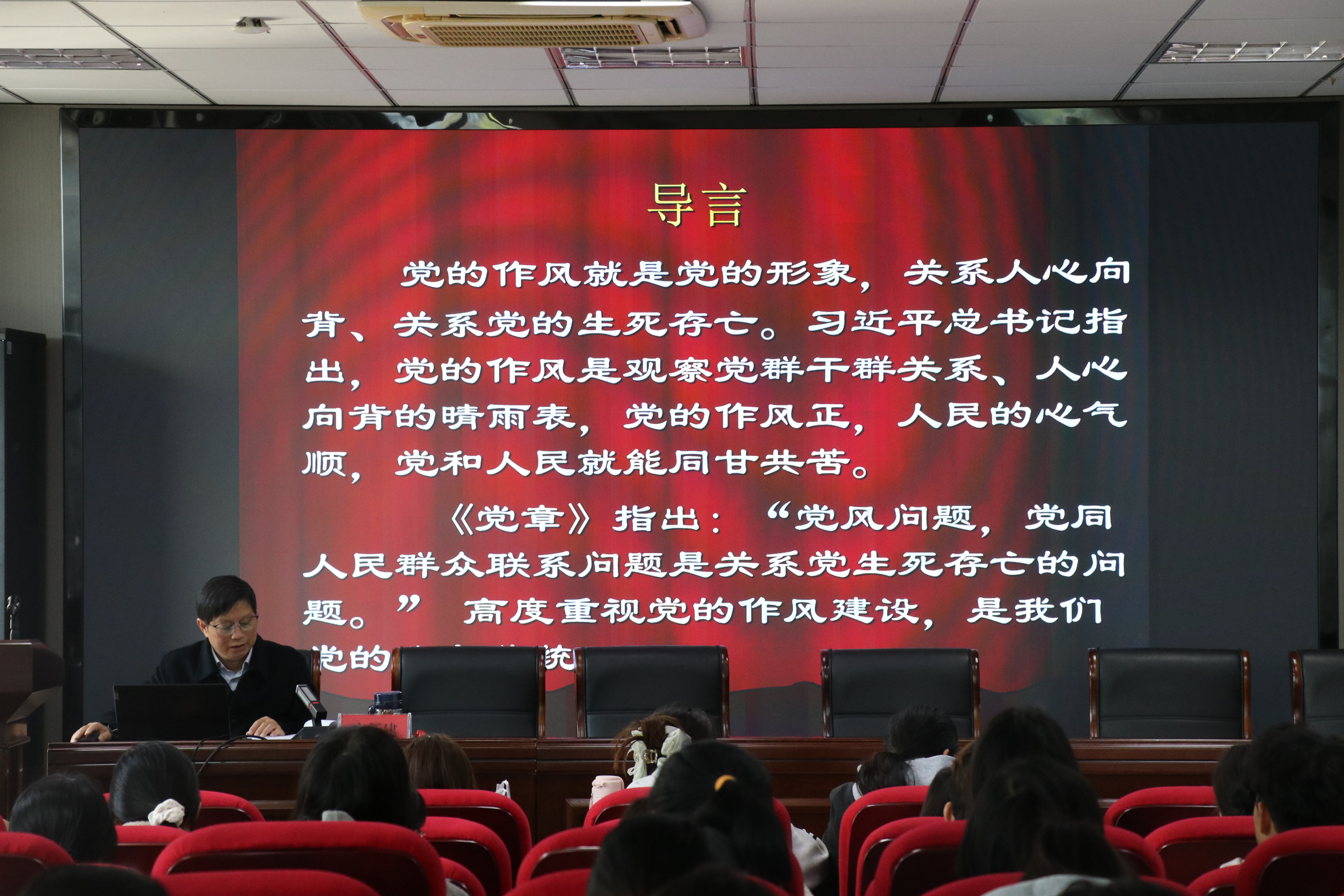 开班仪式结束后,李新建围绕党的作风建设讲授培训第一课。他系统阐释了党的作风建设的历史脉络与核心要义。他强调,作为新时代的青年学子,要将党的优良作风内化于心、外化于行,努力用理论武装头脑、用实践锻炼筋骨、用服务贴近群众、用反省砥砺品格,在学思践悟中强党性、正作风,奋力书写为强国建设、民族复兴挺膺担当的青春篇章。(撰稿、摄影:廖昳淇       编辑:田梦甜      审核:鲍青燕  赵丽丽)
