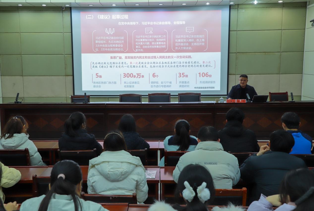 宣讲会上,余立围绕党的二十届四中全会精神核心要义,全面解读“十四五”时期取得的重大成就,深入解读“十五五”时期经济社会发展的指导方针、主要目标、战略任务与重大举措,并结合安徽发展实际,对党的二十届四中全会精神进行深度阐释。