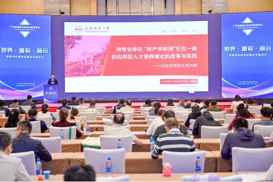 会上,潘锦云作了题为《微专业牵引“政产学研用”五位一体的应用型人才培养模式的改革与实践——以安庆师范大学为例》的主题报告。他系统阐述了我校以微专业为牵引,通过整合各方资源,构建协同育人机制的创新路径。他指出,微专业以其灵活性和针对性,有效衔接产业动态与人才培养,缩短了学生能力与市场需求的差距,为高等教育教学改革提供了可复制、可推广的实践范本。