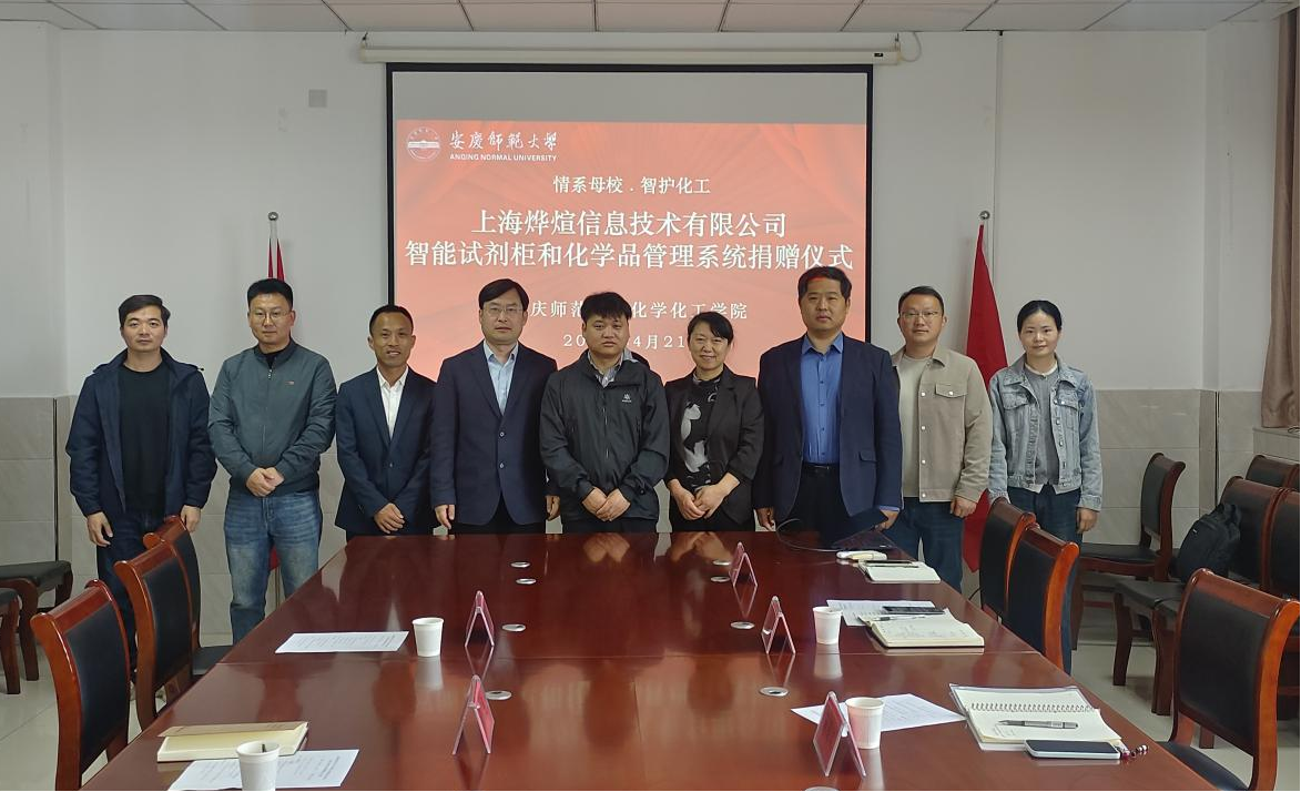4月21日,化学化工学院举行“情系母校 智护化工”校友捐赠仪式。经济与管理学院市场营销专业2011届校友高鹏代表上海烨煊信息技术有限公司向学院捐赠化学品智能柜及化学品全流程智慧管理系统。经济与管理学院党委书记刘燕杰、化学化工学院党政班子成员、辅导员代表参加仪式。
