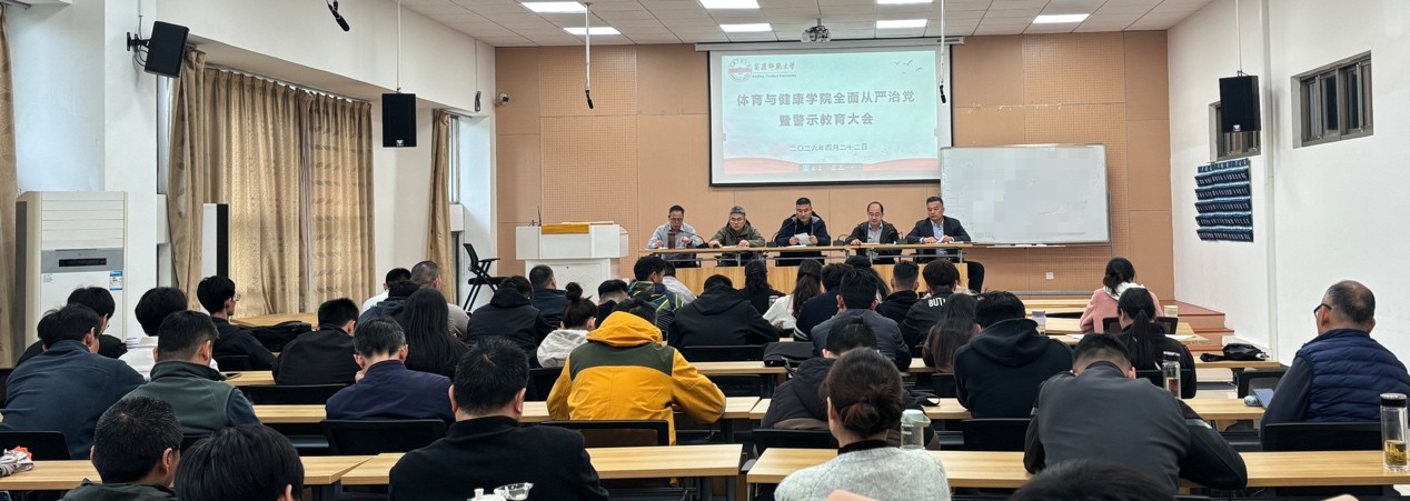 4月22日,体育与健康学院在体育馆多媒体教室召开全面从严治党暨警示教育大会,旨在加强学院党风廉政建设,提升全体教职工的师德修养与纪律意识。学院领导班子、全体教职工参会。会议由学院党委副书记、纪委书记杜百忍主持。
